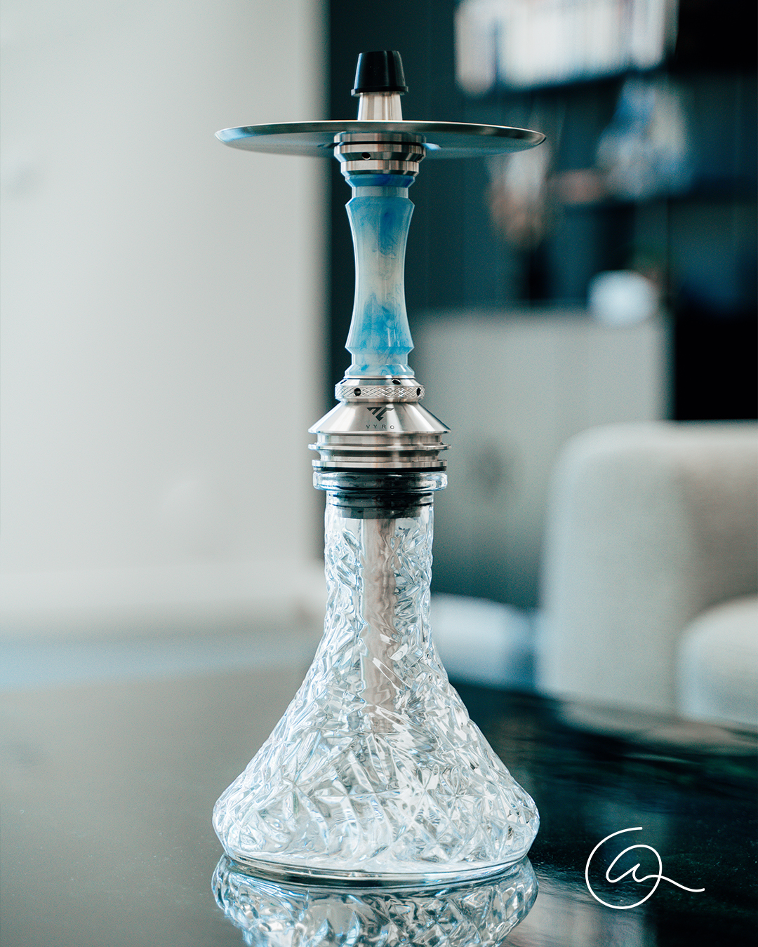 Lors du nettoyage de la chicha, il est recommandé de nettoyer le vase avec une attention particulière afin d’en protéger la couleur. Le cendrier superposé à l’assiette et portant le monogramme VYRO doit également être nettoyé avec précaution, car le revêtement peut s’enlever s’il est nettoyé trop intensément avec une éponge rugueuse. Le vase ne doit pas être nettoyé avec de l’eau chaude et/ou un détergent. Il est donc déconseillé de nettoyer la chicha au lave-vaisselle !