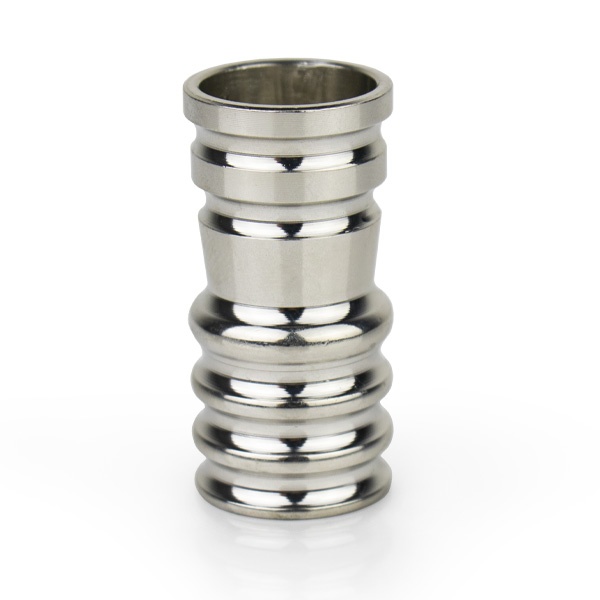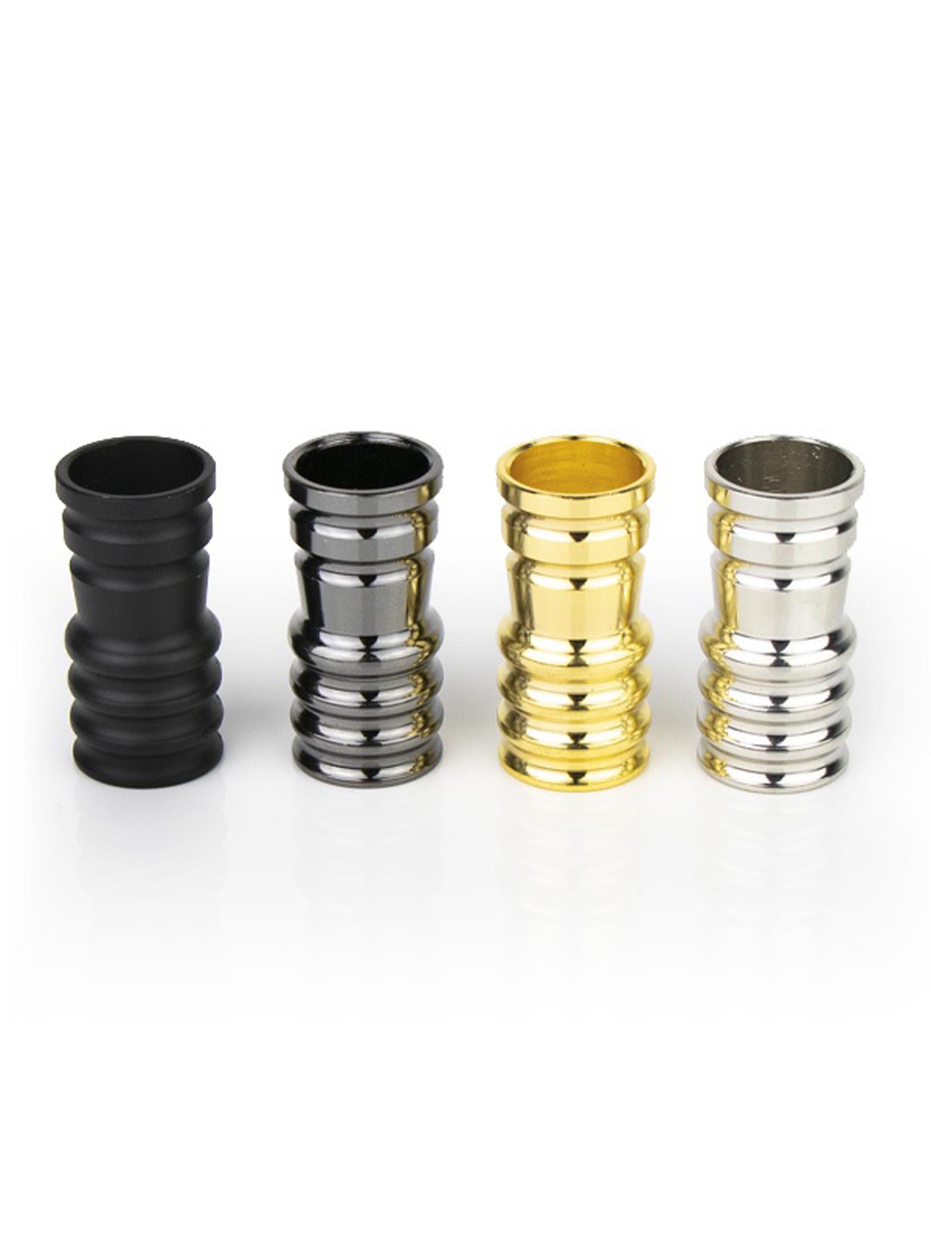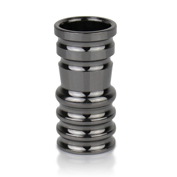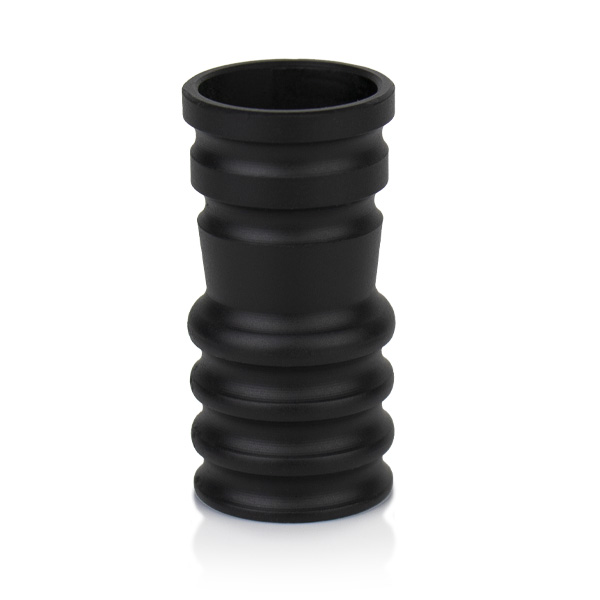 Connecteur universel en aluminium pour tuyau en silicone. Adaptable à toutes les chichas conçues pour une connexion avec joint. A visser sur le raccord de tuyau situé sur la base de la colonne de fumée.
