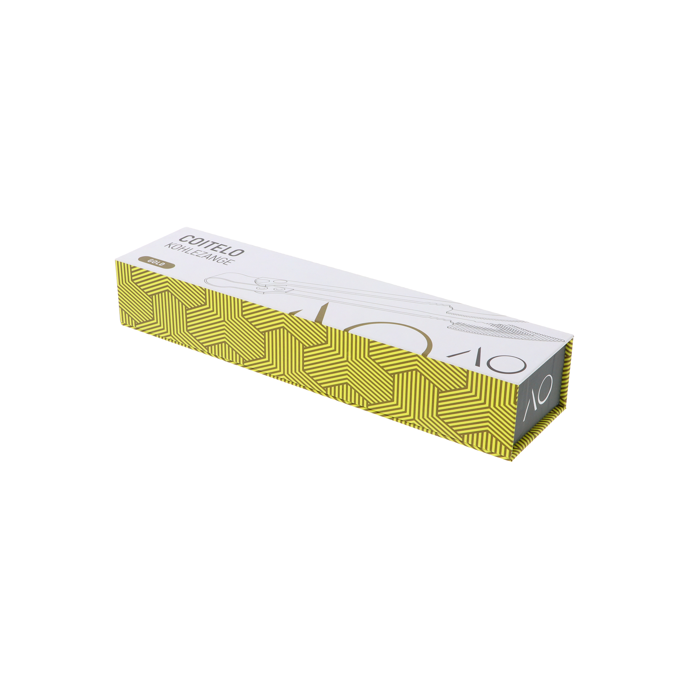Trouver la pince à charbon parfaite pour votre chicha peut être un véritable défi et l’AO Coitelo vous propose exactement ce qu’il faut. Désormais ce casse-tête n’a plus lieu d’être. Avec son design unique en forme de poignard, elle est non seulement élégante, mais aussi très robuste. Pas de tôle emboutie, mais un acier inoxydable V2A* de 3 mm d’épaisseur qui confère à cette pince rigidité et robustesse. La cannelure très épaisse de la pointe en forme de poignard fait du ramassage du charbon de votre chicha avec l’AO Coitelo un véritable plaisir !